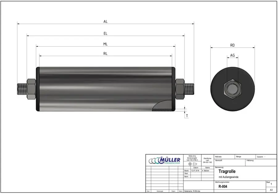 • Achsmaterial: Aussengewind M8 Stahl verzinkt